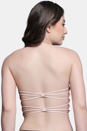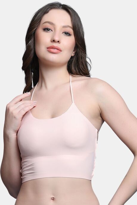 PrettyCat Lightly Padded Non Wired Sexy Bralette Bra With Halter Strap - Peach