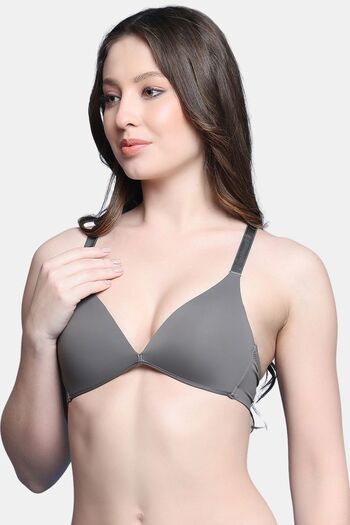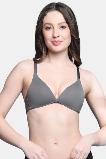 PrettyCat Lightly Padded Non Wired Sexy Plunge Bra For Women - Mouse