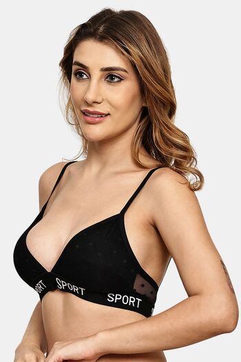 Prettycat Lightly Padded Nonwired Triangle Cup Bralette For Women - Black