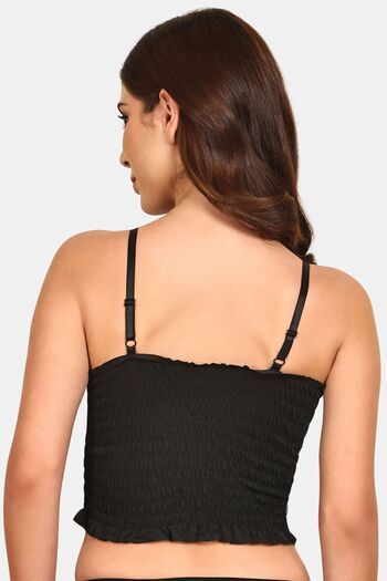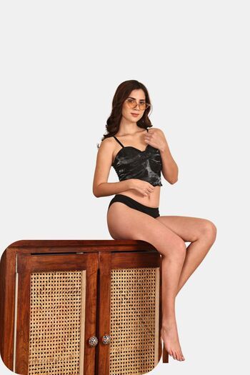 Prettycat Lightly Padded Satin Finish Long Bralette - Black