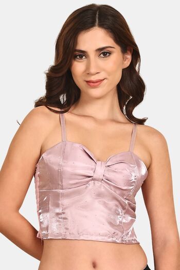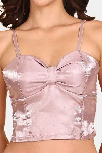 Prettycat Lightly Padded Satin Finish Long Bralette - Pink