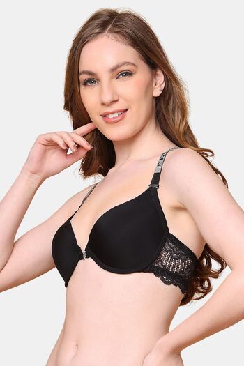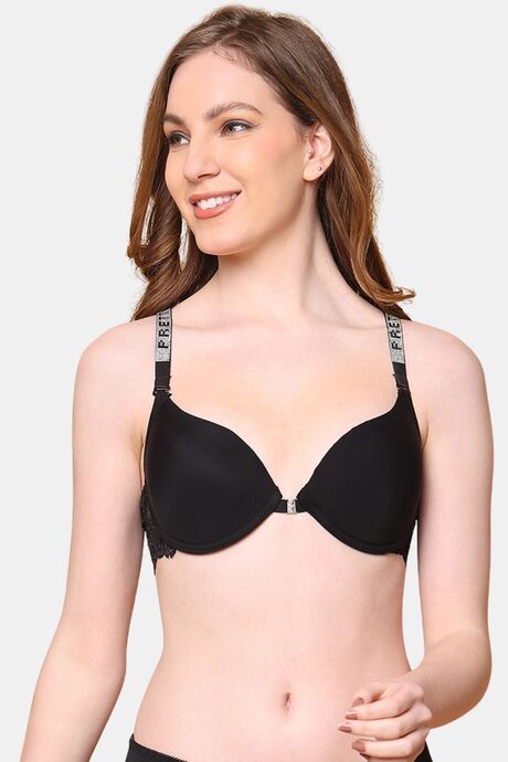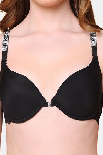 PrettyCat Lightly Padded T-shirt Bra With Shine Strap for Women & Girls - Black