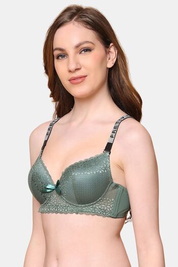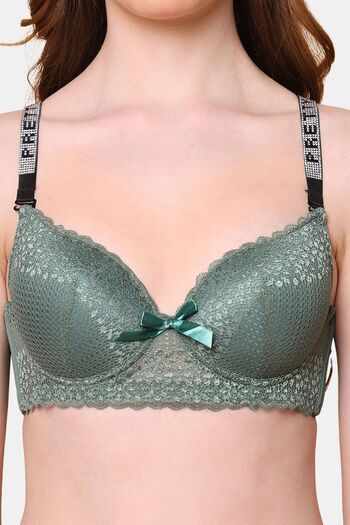 PrettyCat Lightly Padded T-shirt Bra With Shine Strap for Women & Girls - Green