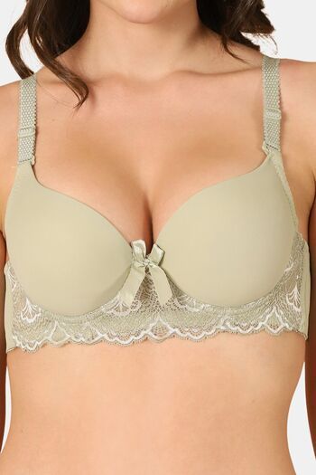 PrettyCat Lightly Padded Underwire Sexy Lace T-Shirt Bra - Light Green