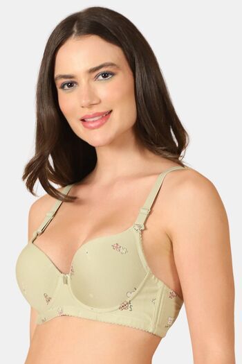 PrettyCat Lightly Padded Underwire Sexy T-shirt Bra With Teddy Print - Green