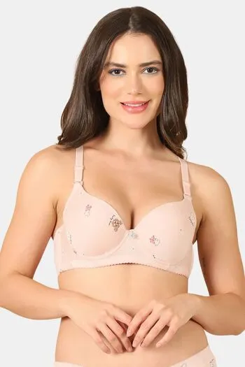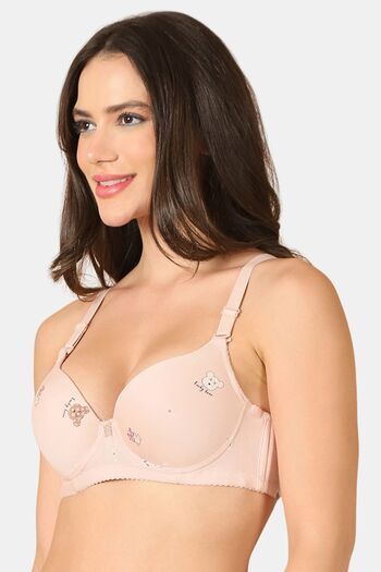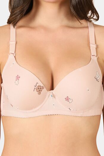 PrettyCat Lightly Padded Underwire Sexy T-shirt Bra With Teddy Print - Pink