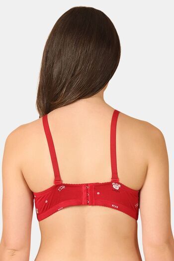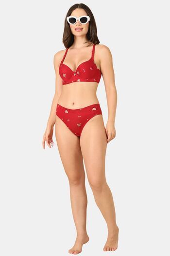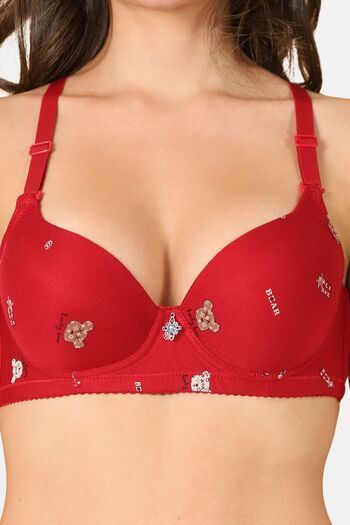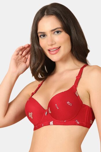 PrettyCat Lightly Padded Underwire Sexy T-shirt Bra With Teddy Print - Red