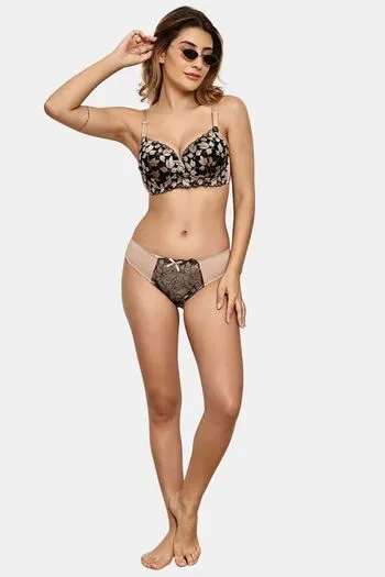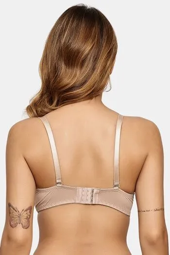 Prettycat Lightly Padded Underwire T-Shirt Bra With Floral Lace - Beige