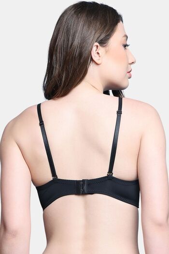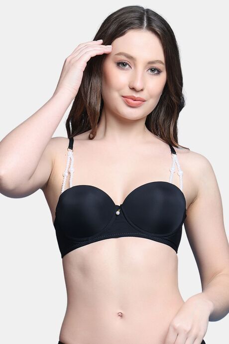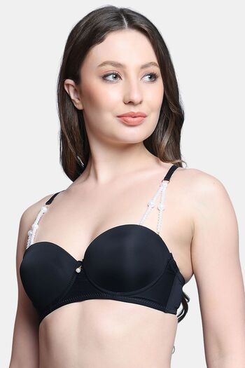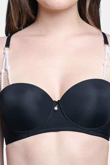 PrettyCat Lightly Padded UnderWired Sexy Balconette Bra With Pearls Strap - Black