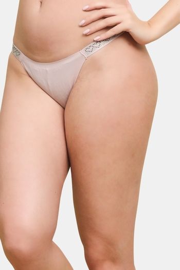 PrettyCat Low Rise Sexy Bikini Panty With Rhineston Strap - Mauve
