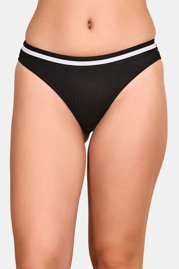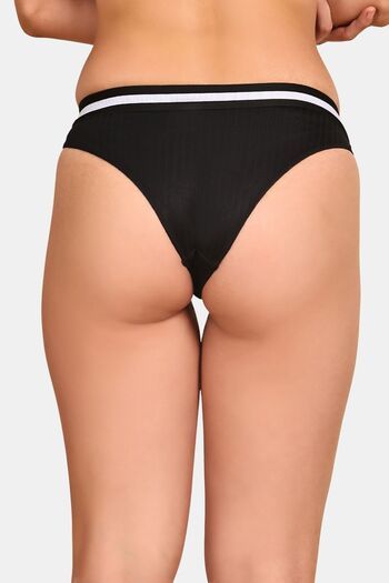 PrettyCat Mid Rise Sexy Stripped Panty - Black