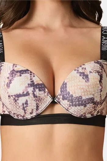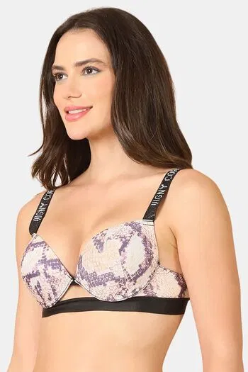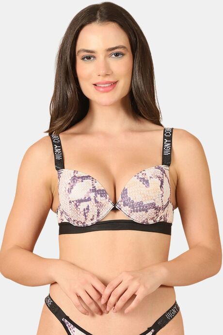 PrettyCat Monogram Shine Straps Underwire Sexy Pushup Bra - Purple