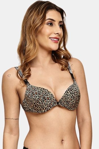 Prettycat Pushup Padded Front Open Bra With Shine Strap - Brown