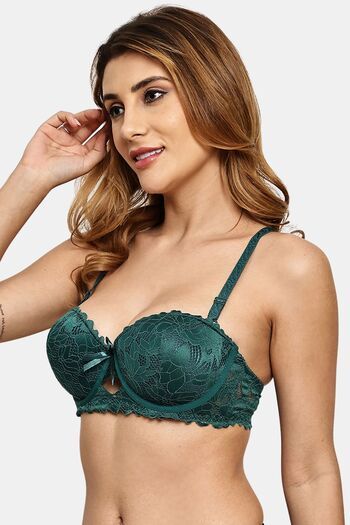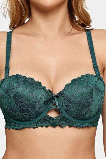 Prettycat Pushup Padded Underwire Lace Bra For Women - Green