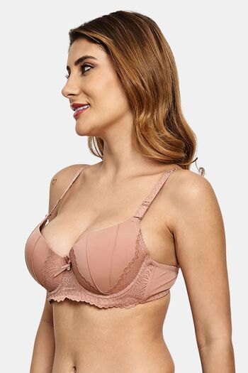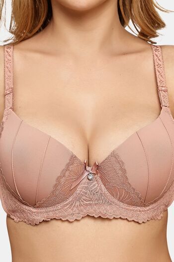 Prettycat Pushup Padded Underwire Lace T-Shirt Bra For Women - Beige