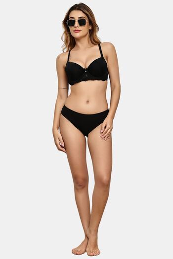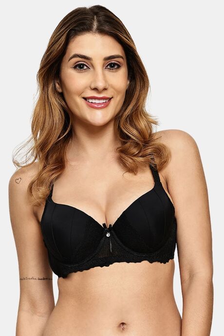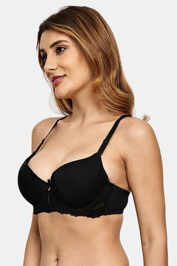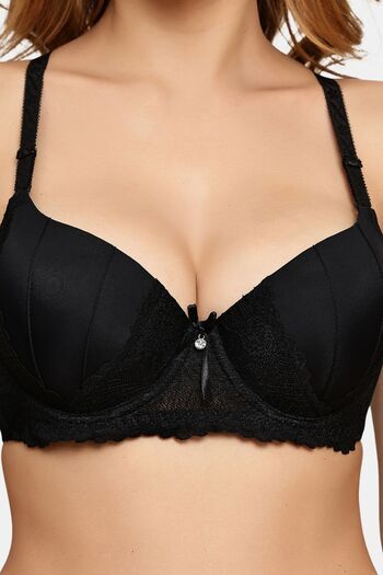 Prettycat Pushup Padded Underwire Lace T-Shirt Bra For Women - Black