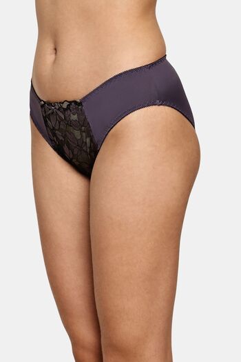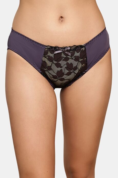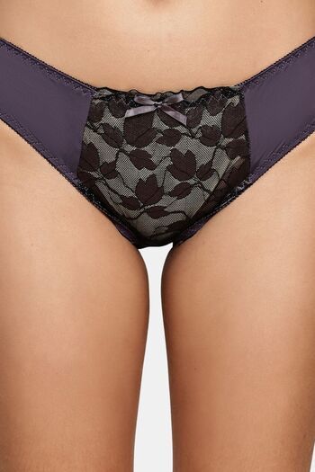 PrettyCat Romantic Floral Mesh Panel Panty - Grey