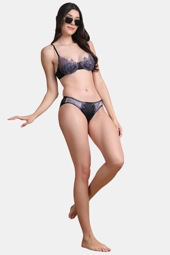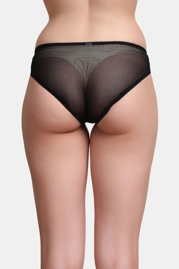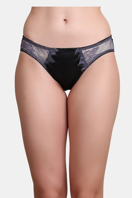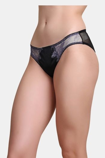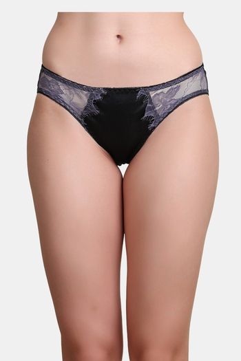 PrettyCat Self-Design Low Rise Lace Bikini Panty - Black