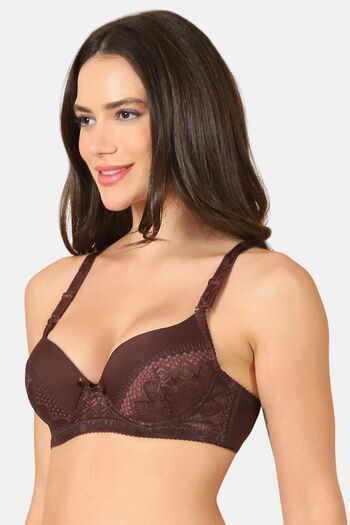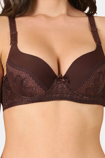 PrettyCat Sexy Lightly Padded Underwire T-shirt bra with bows - Brown