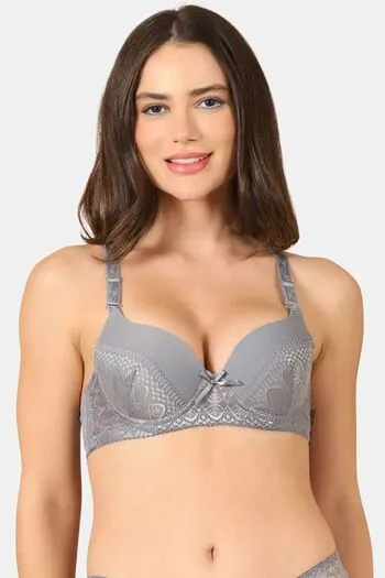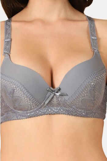 PrettyCat Sexy Lightly Padded Underwire T-shirt bra with bows - Grey