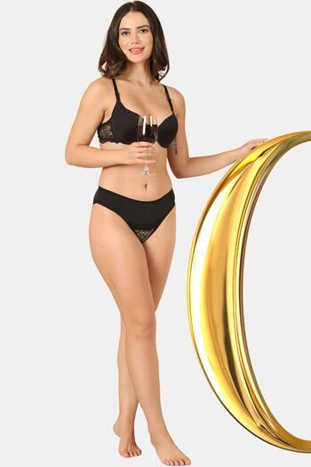 PrettyCat Sexy Women Lightly Padded Underwire Plunge Bra - Black