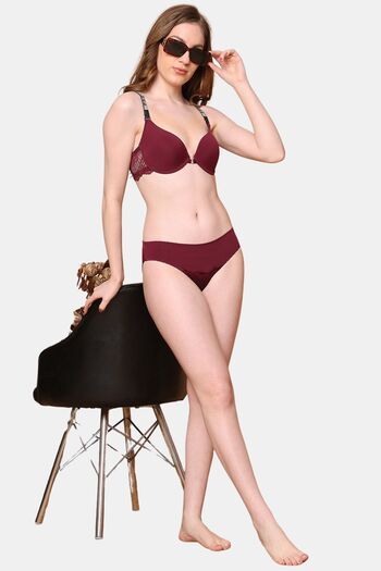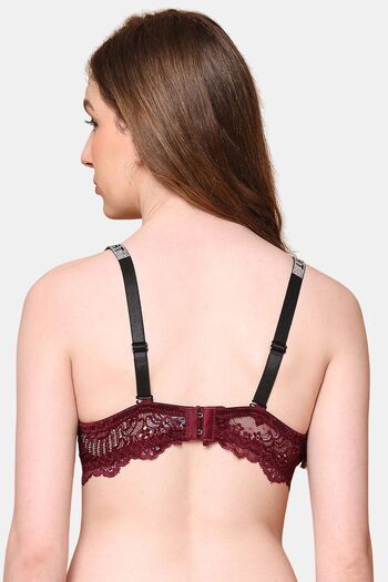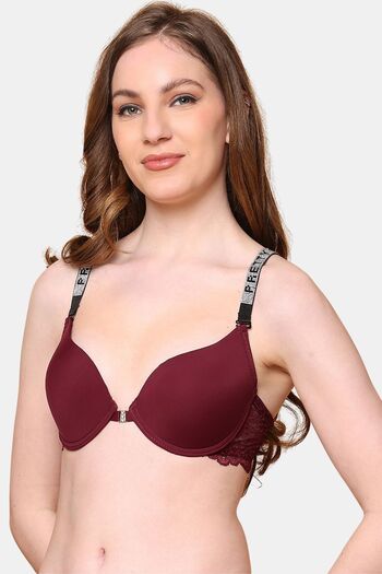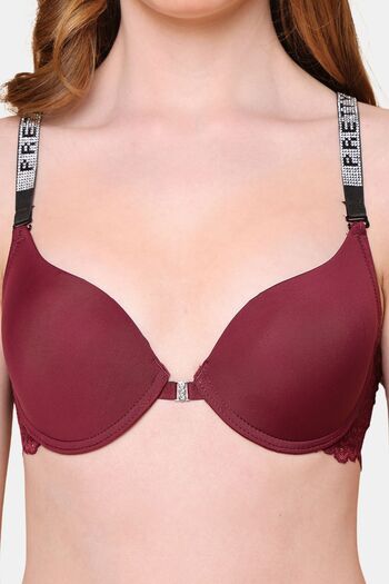 PrettyCat Sexy Women Lightly Padded Underwire Plunge Bra - Wine