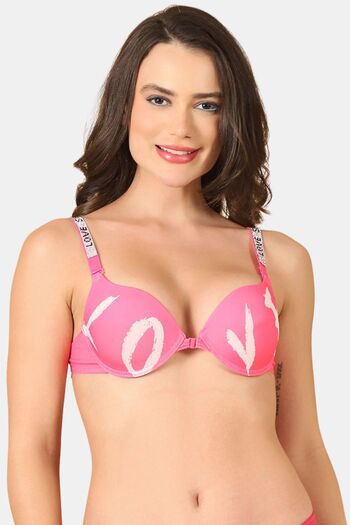 PrettyCat Shine Strap Sexy Front Open Underwire Pushup Bra - White