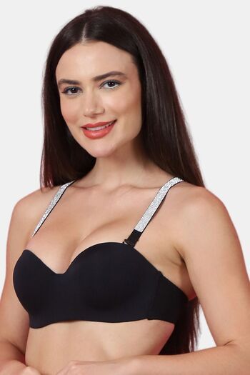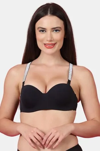 PrettyCat Shine Strap Sexy Half Cup Underwire Balconette Bra - Black