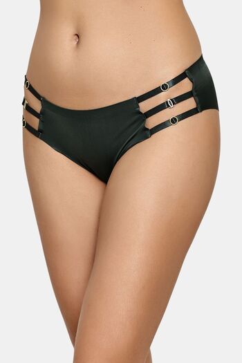 PrettyCat Triple Side Strap Bikini Panty with Gold Ring Accents - Green