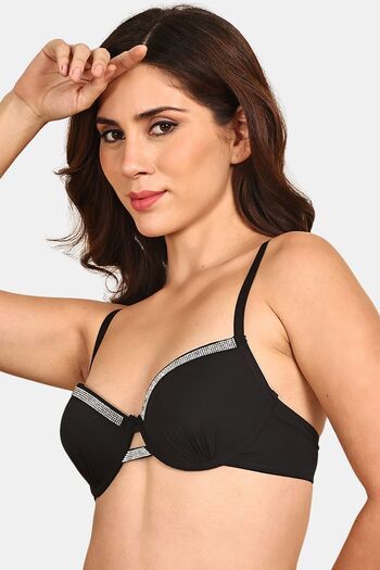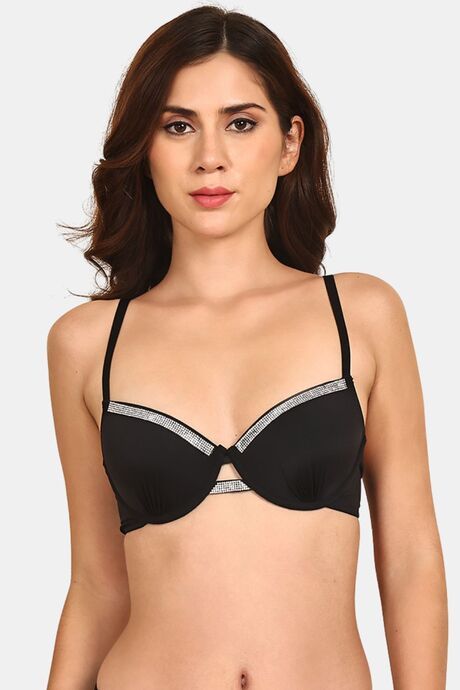Prettycat Underwire Plunge Bra Design With Rhinestone Cup - Black