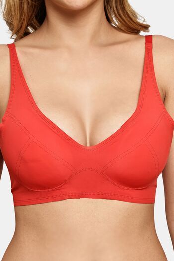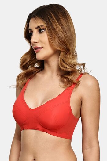 Prettycat Wireless Removable Cup Sports Bra For Women - Red