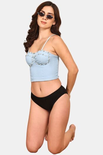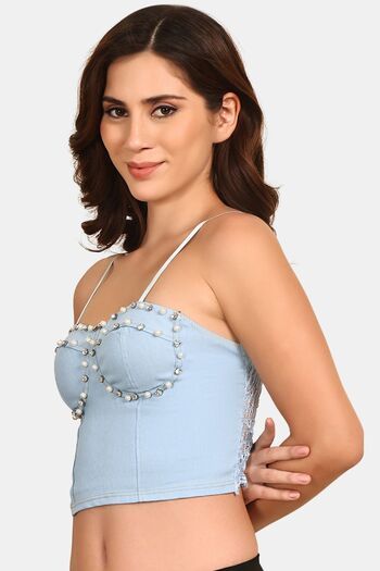 Prettycat Women Lightly Padded Denim Bralette Crop Top - Blue