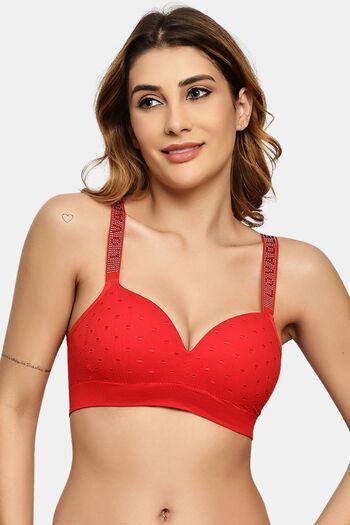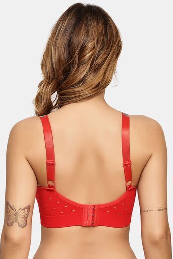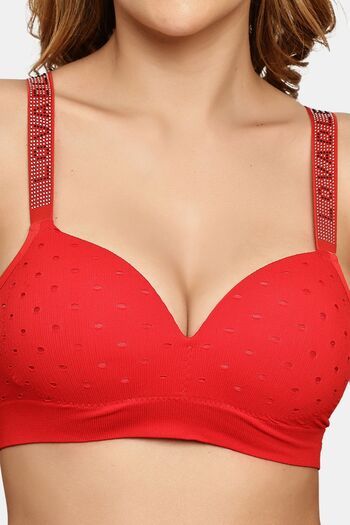 Prettycat Women Lightly Padded T-Shirt Bra With Rhinestone Strap - Red