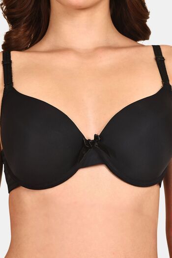 Prettycat Women Lightly Padded Underwire Plunge Bra With Bow - Black