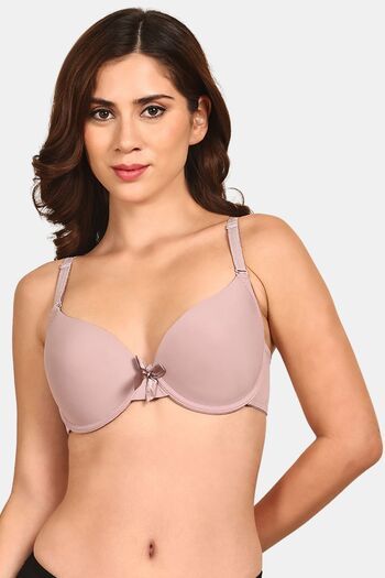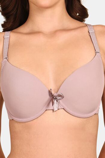 Prettycat Women Lightly Padded Underwire Plunge Bra With Bow - Mauve