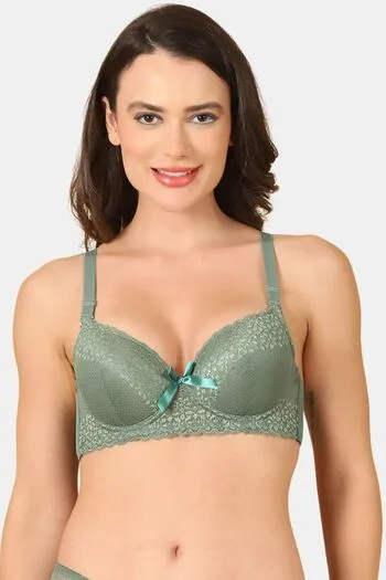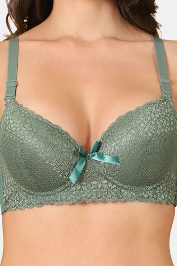 PrettyCat Women Lightly Padded Underwire Sexy Lace T-Shirt Bra - Green