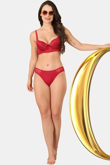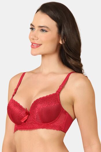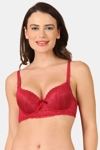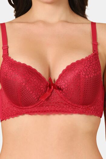 PrettyCat Women Lightly Padded Underwire Sexy Lace T-Shirt Bra - Maroon