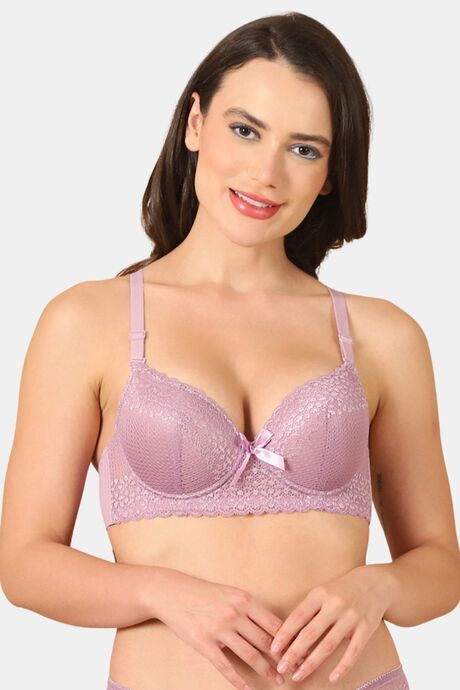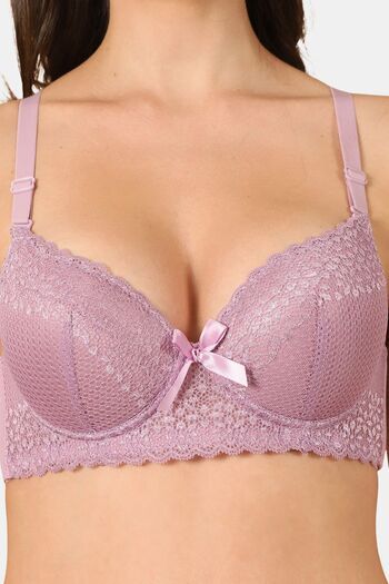 PrettyCat Women Lightly Padded Underwire Sexy Lace T-Shirt Bra - Mauve