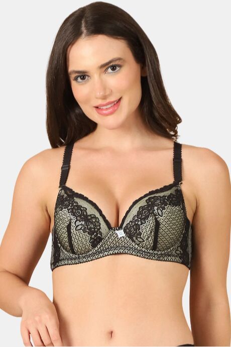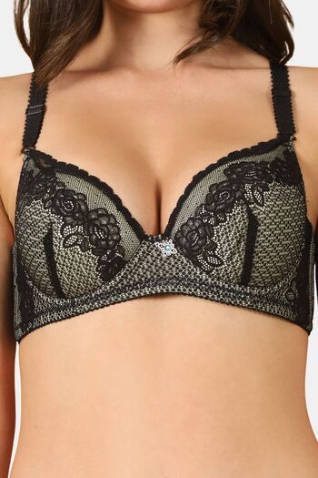 Prettycat Women’S Lace Underwired Lightly Padded T-Shirt Bra - Black