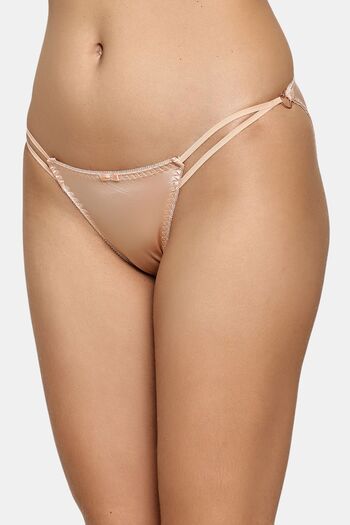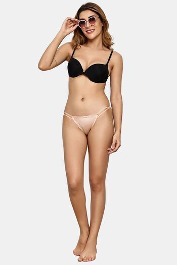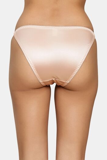PrettyCat Women’s Low Rise Satin Bikini Panty – Double Side Strap, Bow Accent - Beige