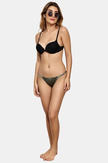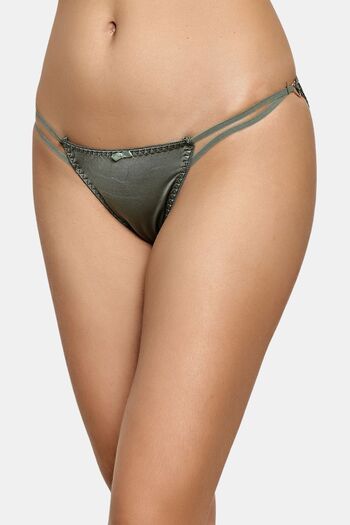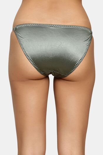 PrettyCat Women’s Low Rise Satin Bikini Panty – Double Side Strap, Bow Accent - Green