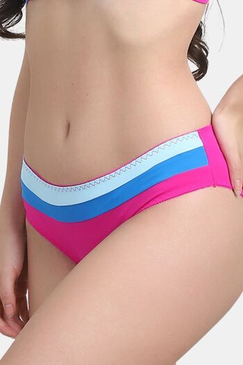 PrettyCat Women’s Mid Rise Colorblock Bikini Panty - Pink