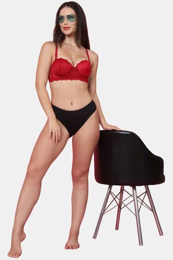 PrettyCat Women Sexy Underwire Balconette Lace Bra - Maroon