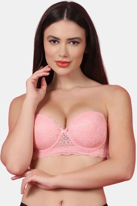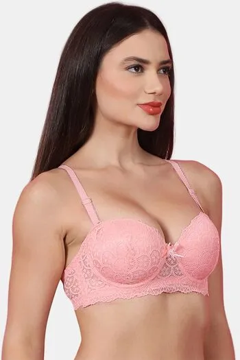 PrettyCat Women Sexy Underwire Balconette Lace Bra - Peach