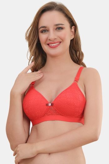 Buy Prettycat Lightly Padded Non-Wire Lace T-Shirt Bra - Red