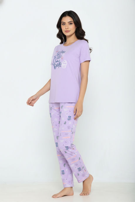 Buy Zivame Farm Lore Knit Cotton Pyjama Set - Lilac Breeze