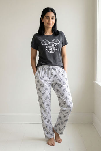 Buy Zivame Mickey and Friends Knit Cotton Pyjama Set - Almost Aqua