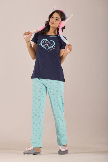 Buy Zivame Farm Lore Knit Cotton Pyjama Set - Opal Blue