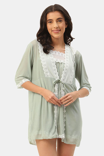 Nightdress or nighty - an easy-fit comfortable dress in soft fabrics, for lounging or sleeping.