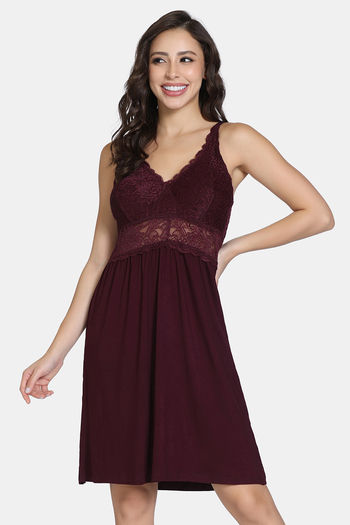 Buy Zivame Lace N Mesh Babydoll With Thong - Wine